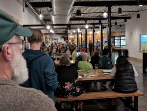 Enjoy educational speakers, conversation, and networking. Three leaders in sustainability speak (10 minute lightning talks) at each meeting. Click the icon to learn more